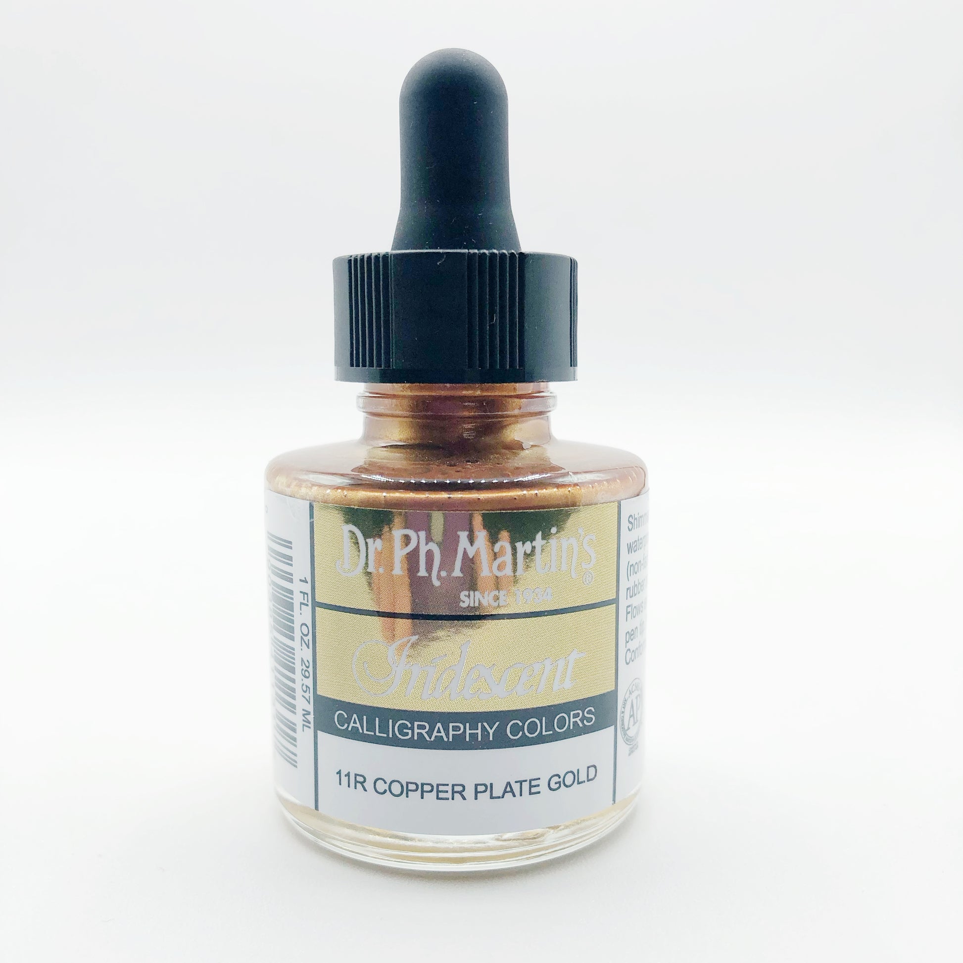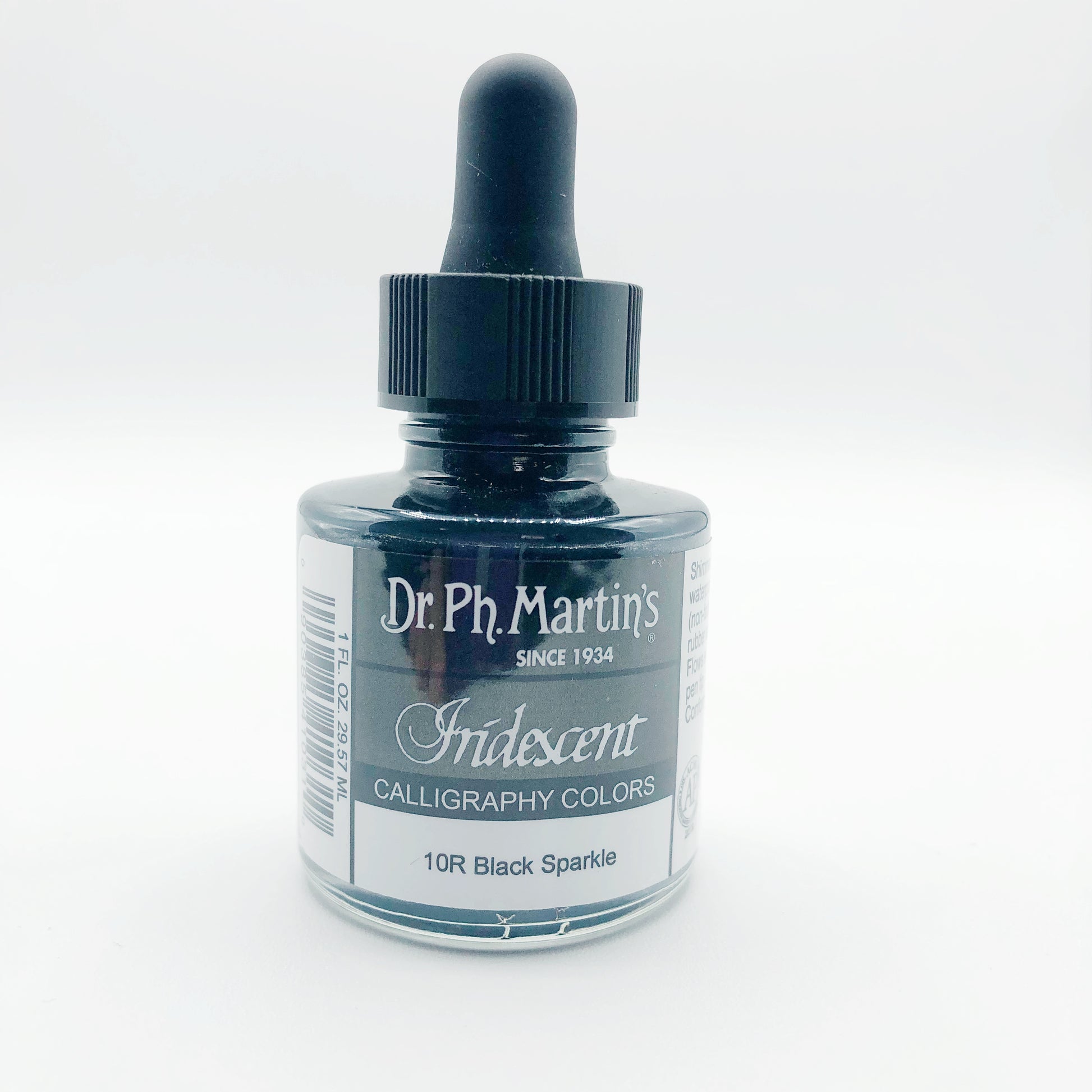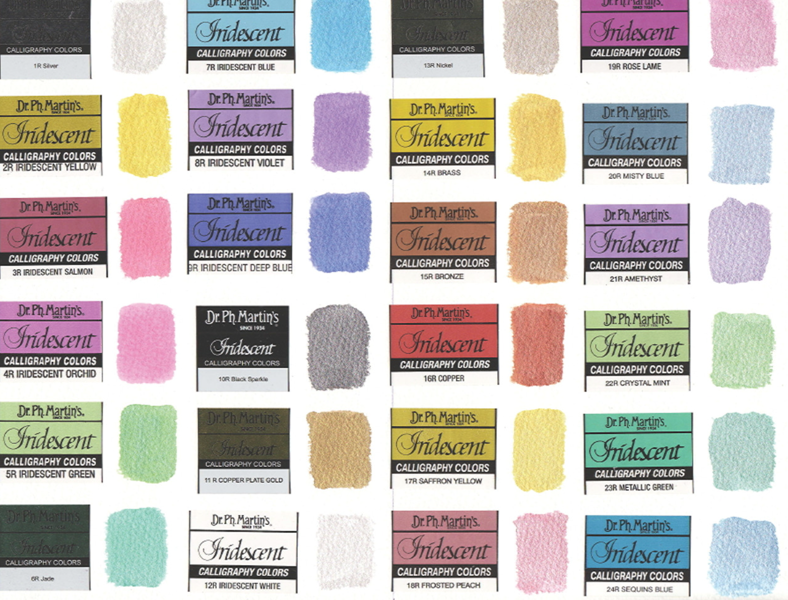 These shimmering colors are highly reflective, waterproof, lightfast, non-toxic, and permanent. These inks are designed specially for calligraphy, making them smooth-flowing and easy to use; no brushing on your nib required. Dr. Ph. Martin's Iridescent inks have incredible covering power on black paper and other dark surfaces, including wood, metal, and even some plastics. Each color dries smooth and even, with no start and stop marks.