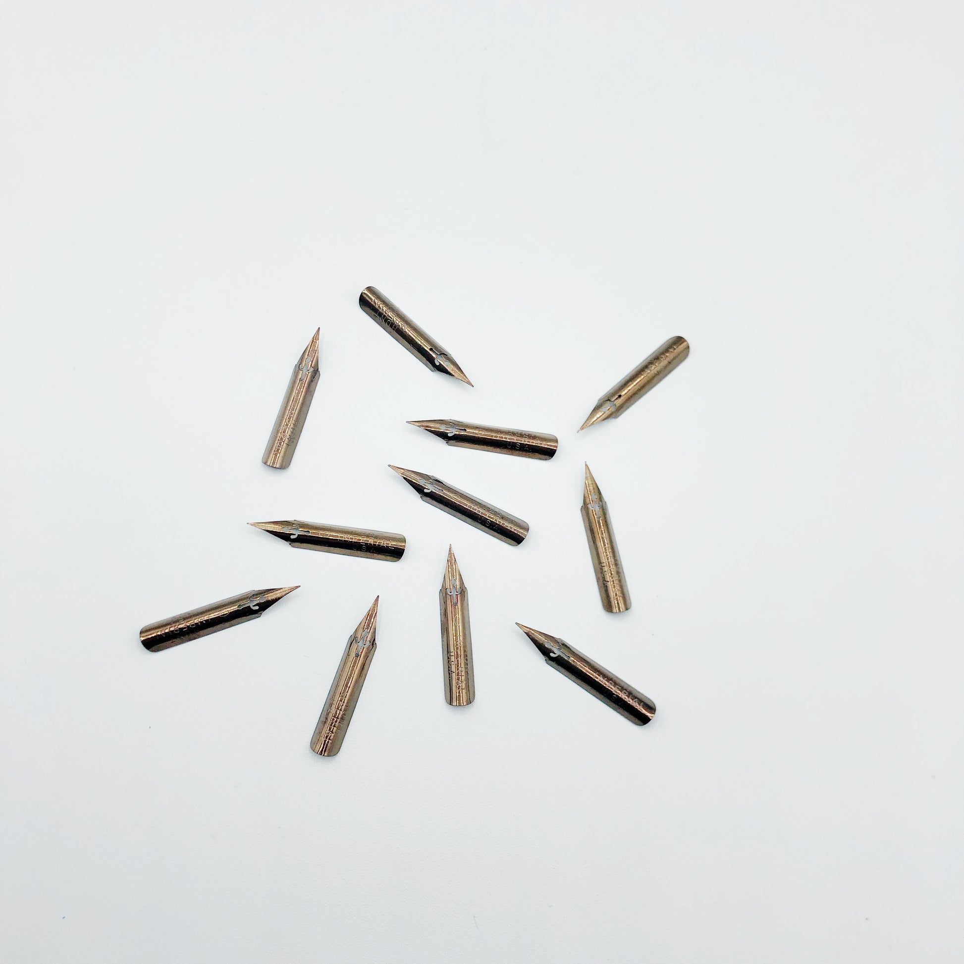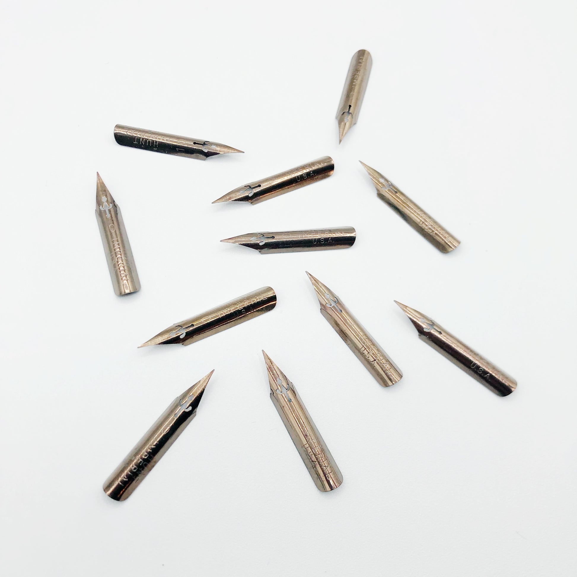 The Hunt 101 is one of the most popular nibs for both Copperplate and Spencerian. Super-flexible and very sharp, this nib produces beautiful line variation, from tiny hairlines to super swells. May snag on very rough paper, but can handle some light texture. Durable, long-lasting nib that is great for with a little experience.