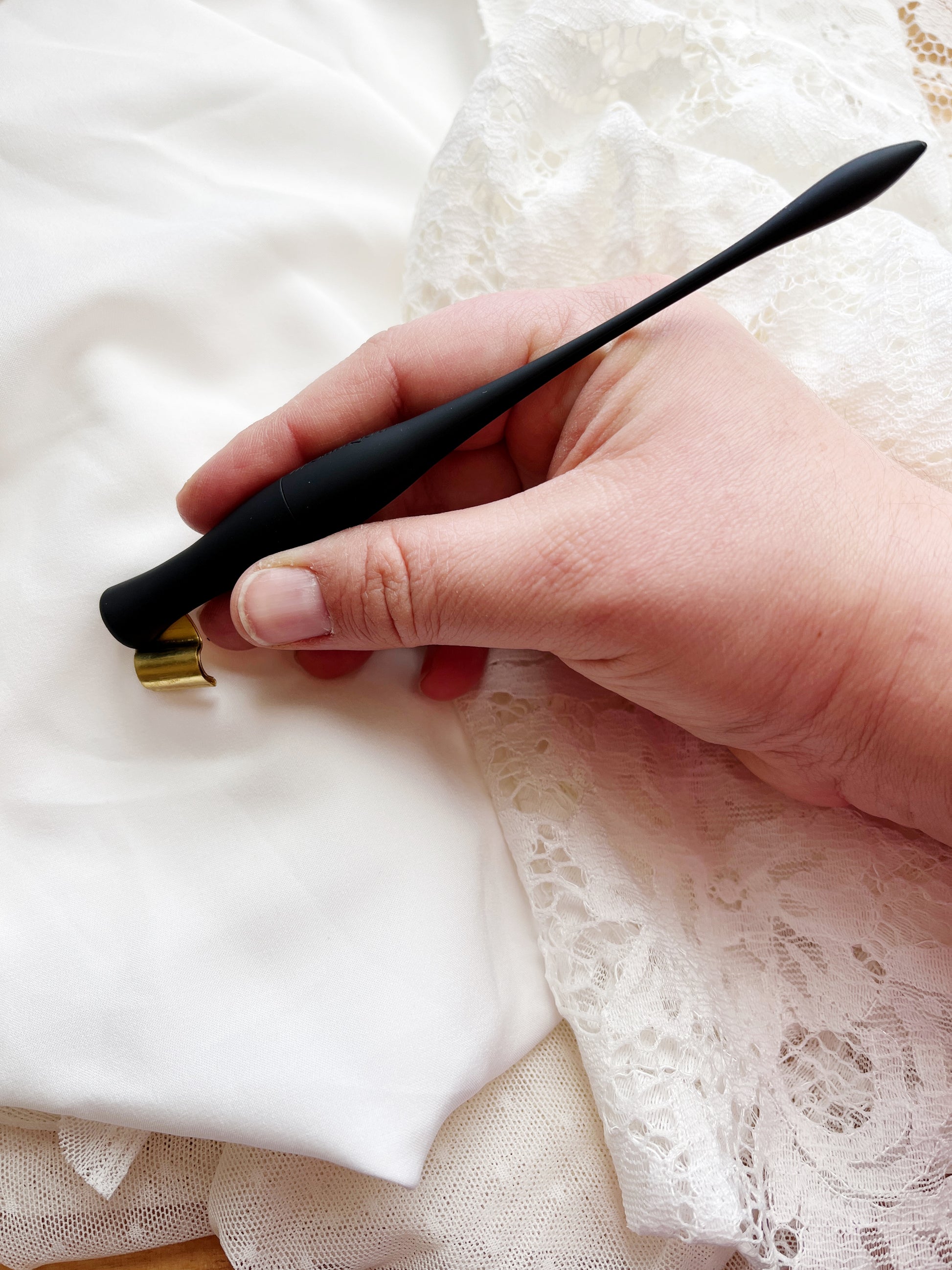 Compatible with standard pointed nibs, or standard broad nibs when the flange is removed. For best results, remove the flange, insert your nib, then insert both back into the holder. Approximate measurements: 6 7/8 OR 17.5 cm long | 1.5cm OR 3/8 at widest point.