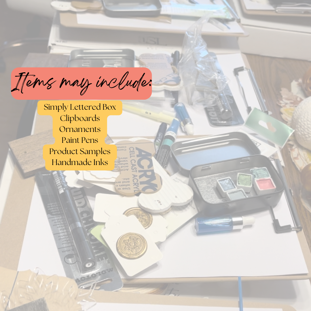 Mystery Bundles are here! Grab one before they are gone. Lettering, Calligraphy and Art supplies. $60+ value in each one. MAY include: Simply Lettered Box, Workbooks, Practice Pages, Handmade Inks, Clipboards, Product Samples, and more.