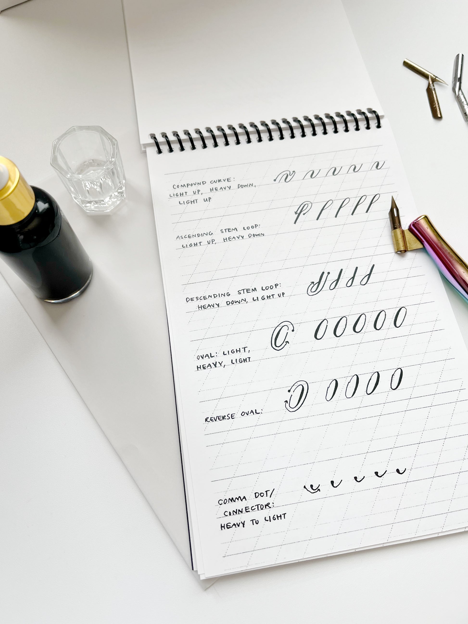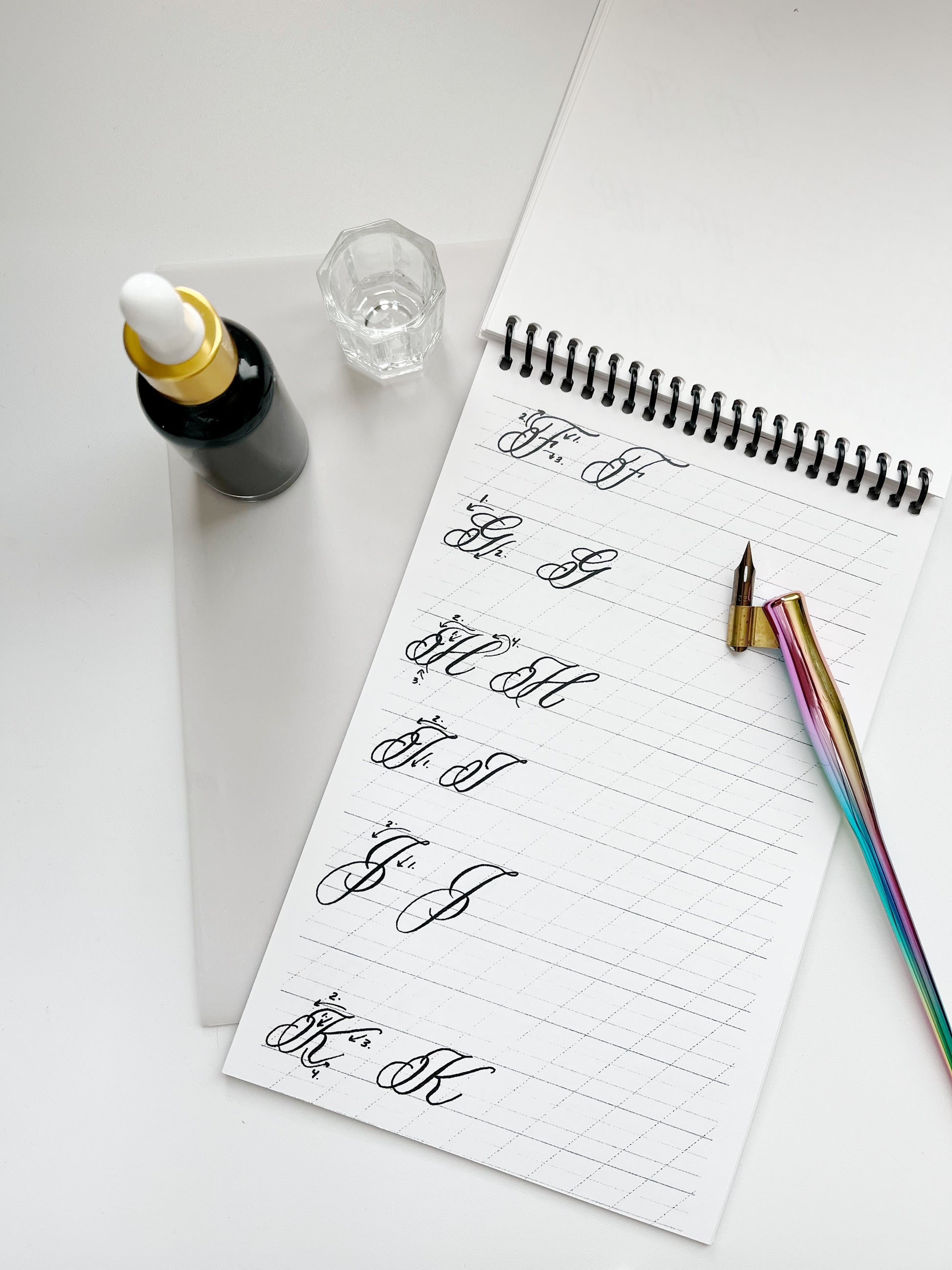 -25 Page Workbook with Basic Strokes, Miniscule and Majuscule Exemplar